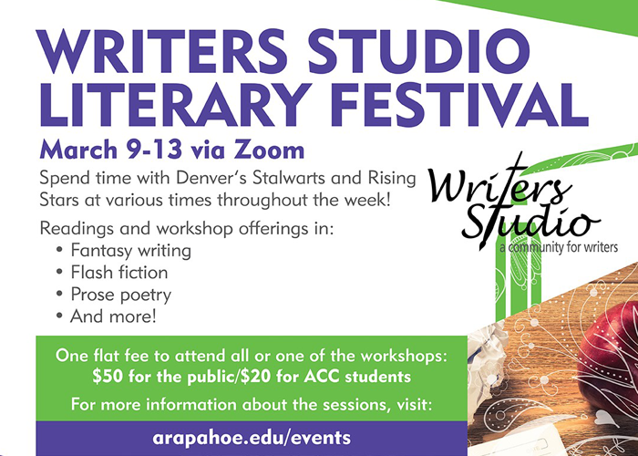 March 9-13, Writer’s Studio Literary Festival at Arapahoe Community College